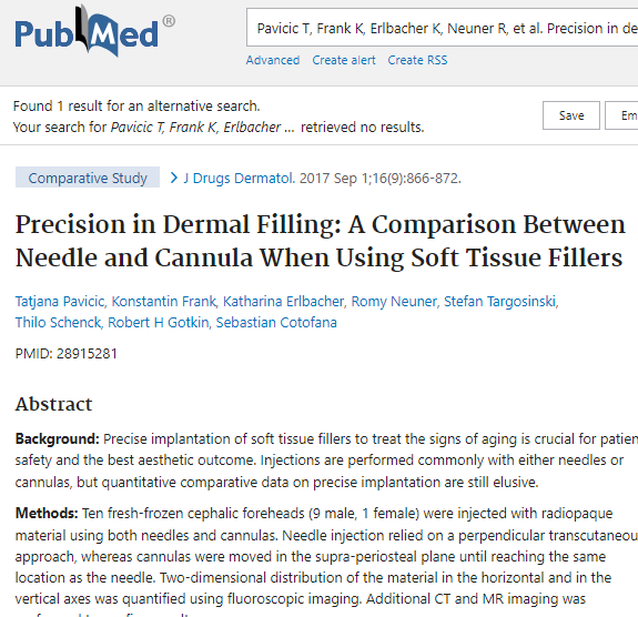 Dolgu enjeksiyonunda hassasiyet, dolgu malzemesinin amaçlanan implantasyon düzleminde kalması olarak tanımlanıyorsa, kanül kullanımı iğnelere kıyasla malzemenin daha hassas bir şekilde enjekte edilmesiyle sonuçlanmıştır. İğnelerle yapılan uygulamalar, malzemenin daha yüzeysel katmanlara dağılmasıyla sonuçlanmıştır; bu, kanüller için belirtilmemiştir. Link